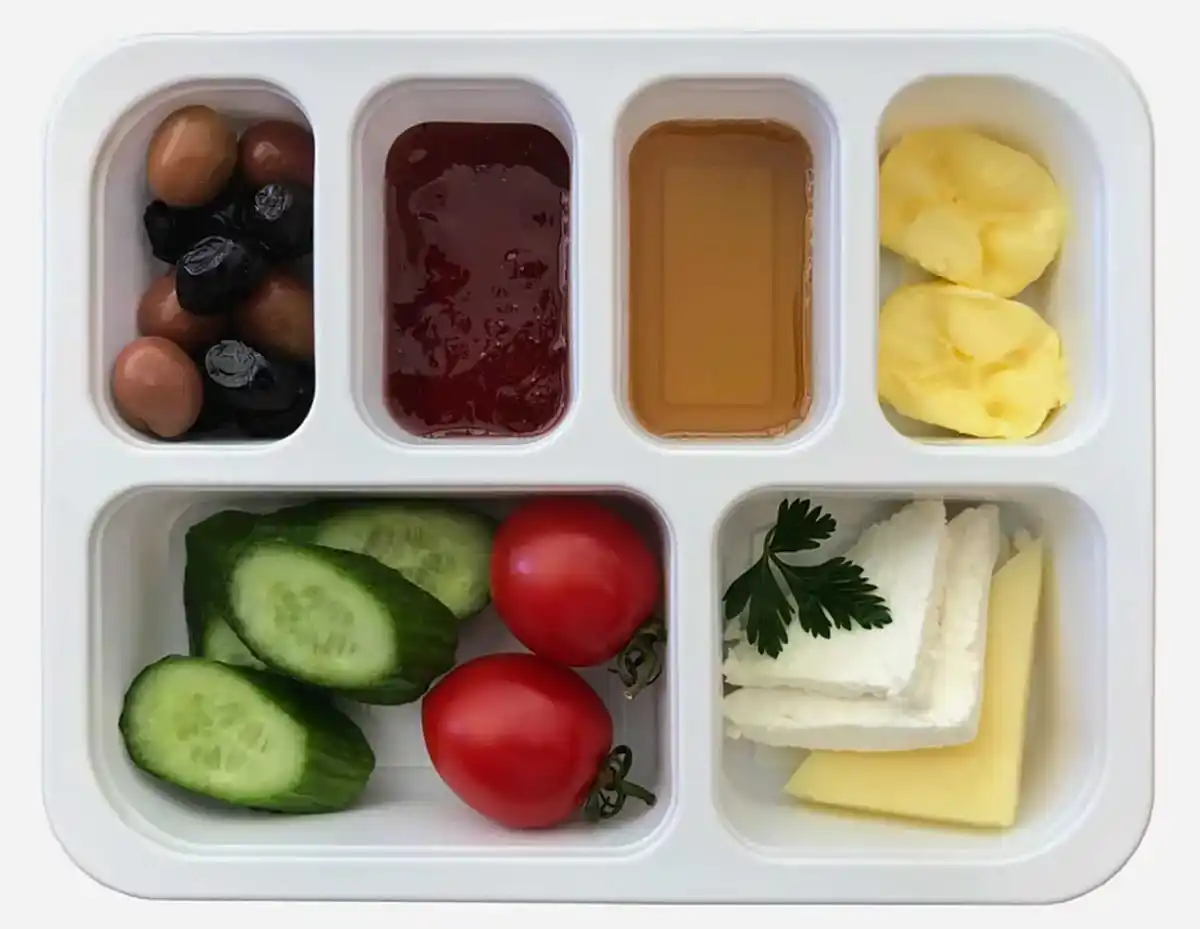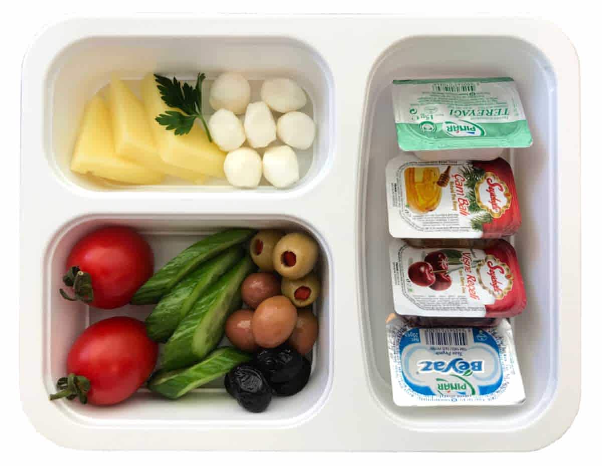 Piknik Reçel, Piknik Bal, Piknik Tereyağı, Kaşar Peynir, Beyaz Peynir, Siyah Zeytin, Yeşil Zeytin, Üçgen Peynir, Piknik Çikolata, Sade/Kepekli Roll Ekmek, Servis Seti